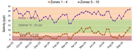 SFWMD Weekly Environmental Conditions Reports Lake Okeechobee: SFWMD reported on September 25th, 2024, “Lake Okeechobee stage was 13.82 feet NAVD88 (15.13 ft NGVD29) on September 22, 2024, which was 0.20 feet higher than the previous week and 1.00 feet higher than a month ago. Average daily inflows (excluding rainfall) increased slightly from 7,080 cfs the previous week to 7,230 cfs. Average daily outflows (excluding evapotranspiration) were zero. In the most recent non-obscured satellite image from September 22, 2024, NOAA’s Harmful Algal Bloom Monitoring System suggests patches of moderate cyanobacteria abundance along much of the western region of the Lake.” St. Lucie Estuary: SFWMD reported that “total inflow to the St. Lucie Estuary averaged 3,794 cfs over the past week with no flow coming from Lake Okeechobee. Mean salinities increased on the surface but decreased on the bottom at the A1A and US1 bridges and remained the same at HR1 over the past week. Salinity in the middle estuary was in the lower stressed range (5-10) for adult eastern oysters.” |